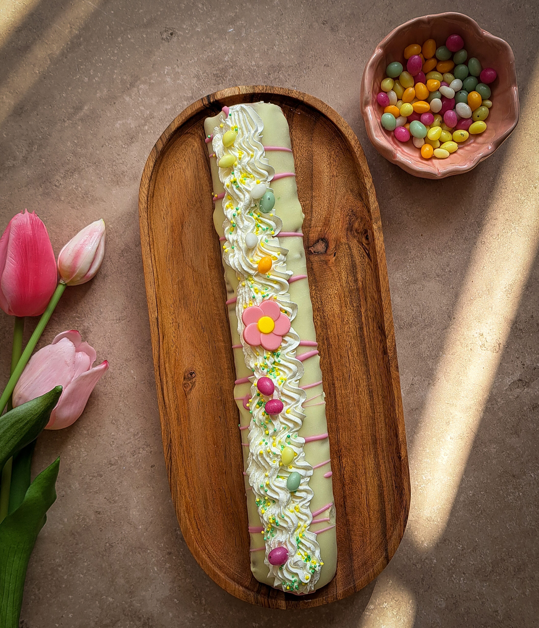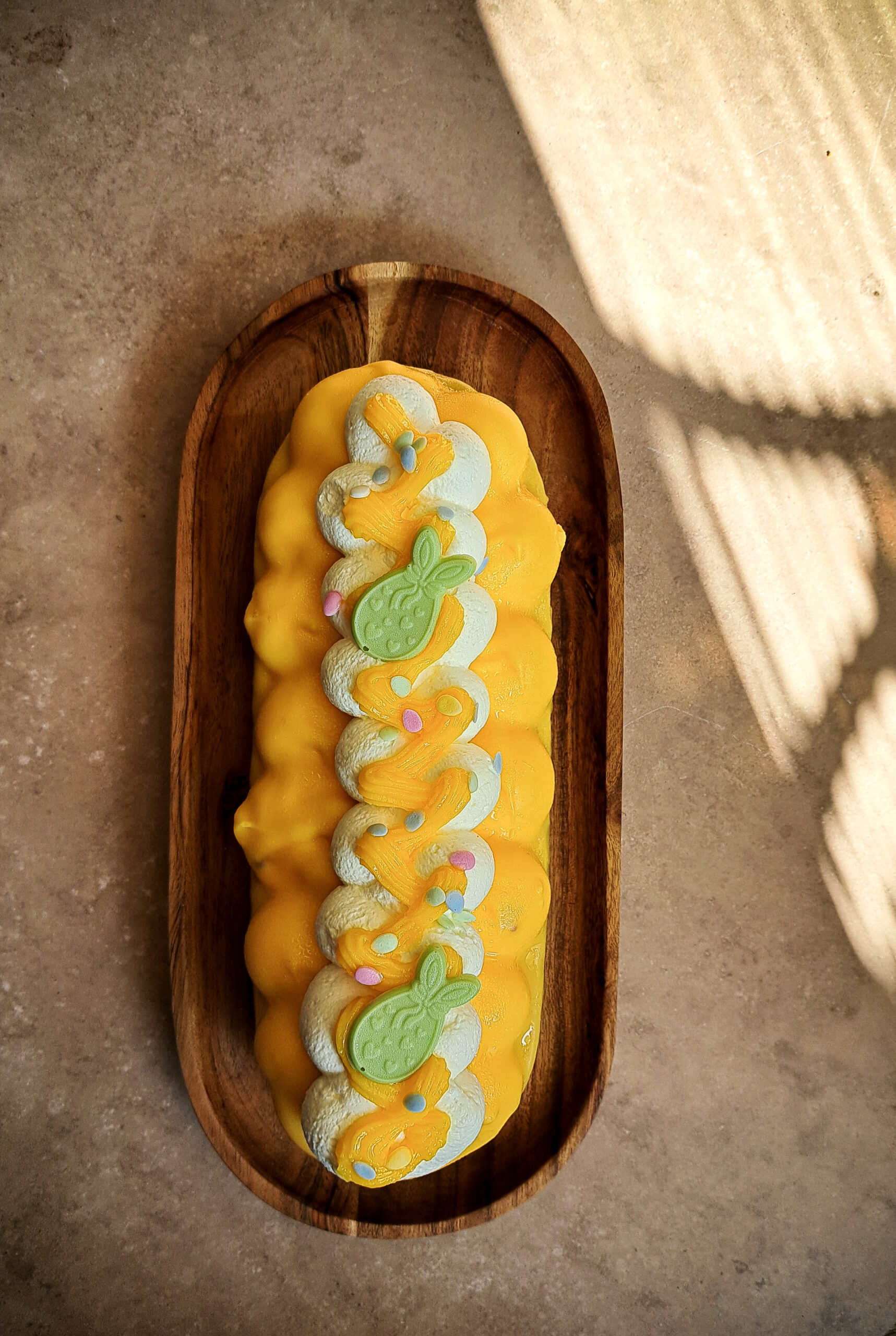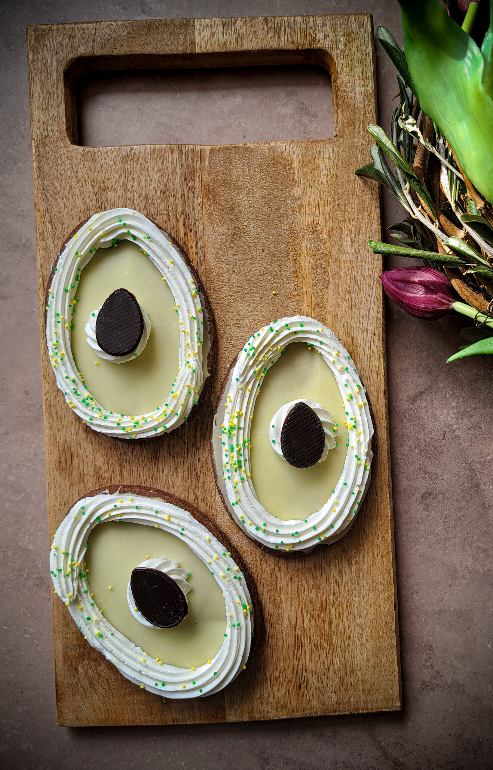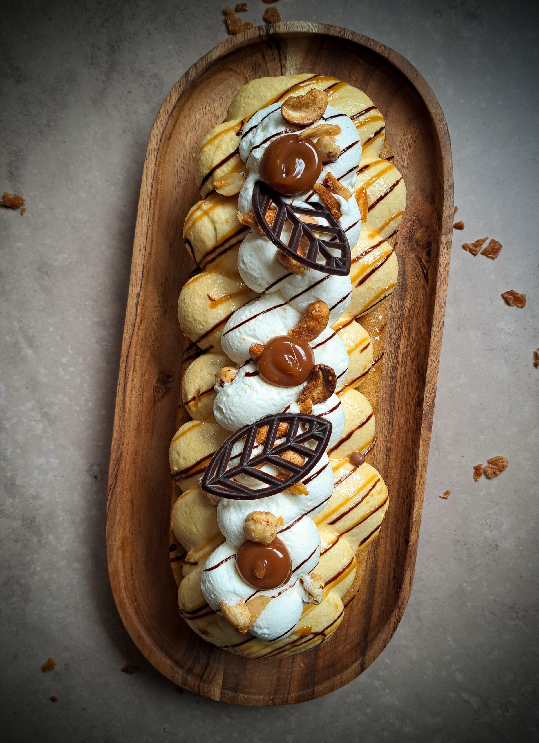 Romige monchou op een knapperige slofbodem. Fris en elegant — ideaal voor het Paasontbijt.