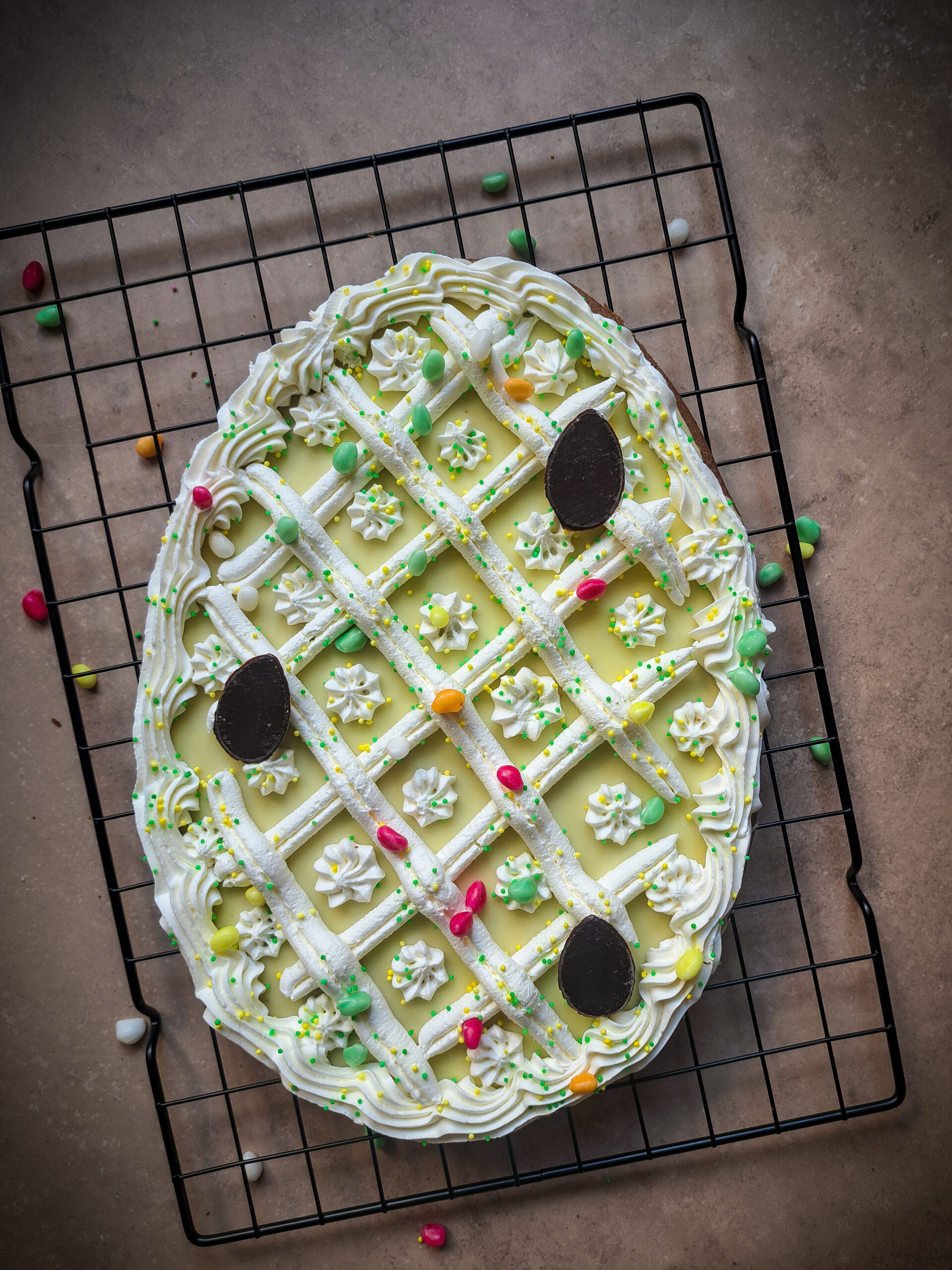 Fluweelzachte advocaatcrème op een luchtige slofbodem. Een klassiek Paasgenot.