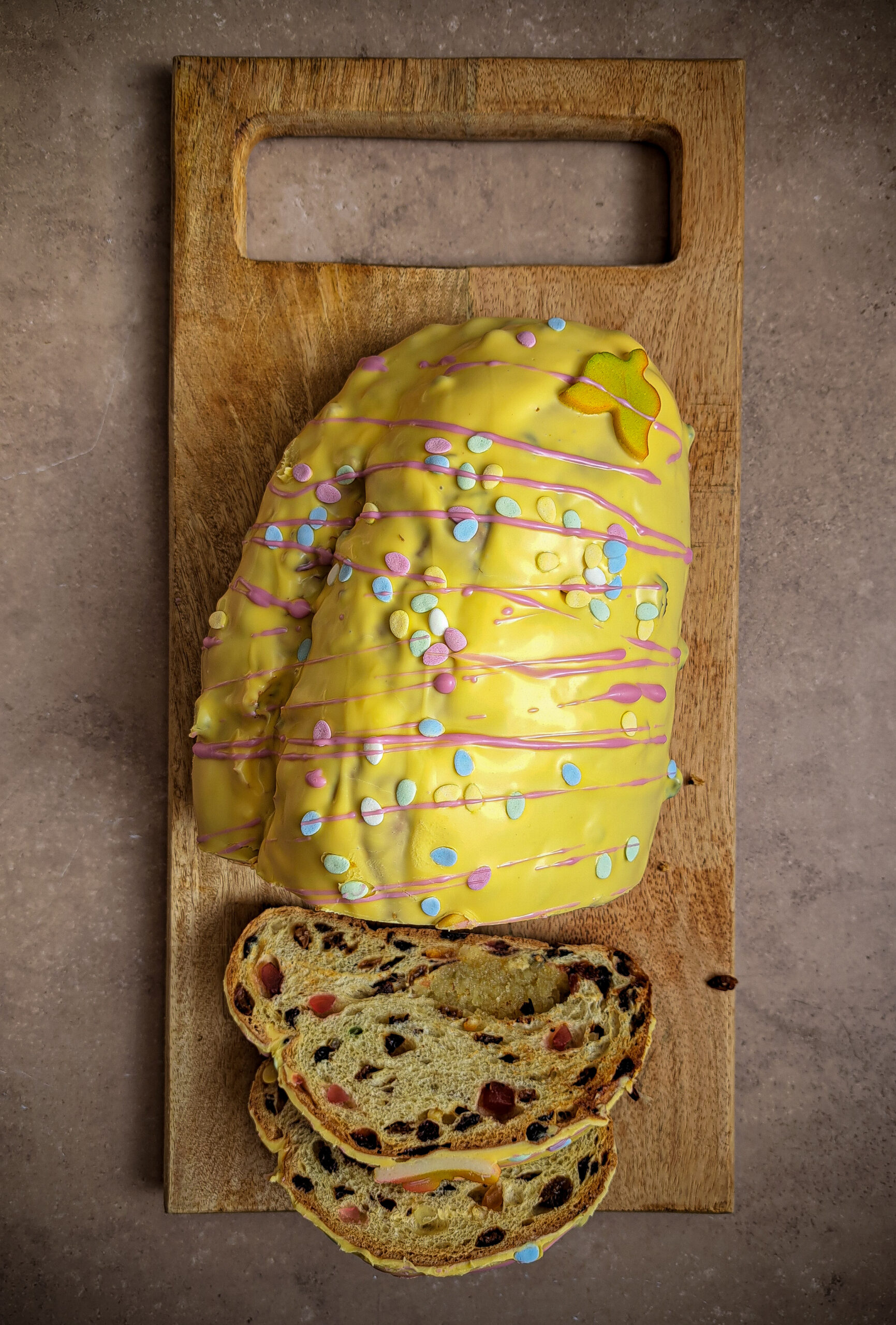 De geur van vers gebakken paasstol vult de bakkerij nog vóór zonsopgang. Met amandelpasta, gedroogde vruchten en een dunne laag poedersuiker — precies goed.
